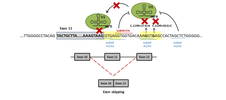 Los resultados indican que estas mutaciones eliminan la unión de U1snRNP a sitios intrónicos no canónicos donde ésta actúa como potenciador de splicing del exón precedente, ampliando por tanto el repertorio de funciones de U1 en el proceso de splicing.
