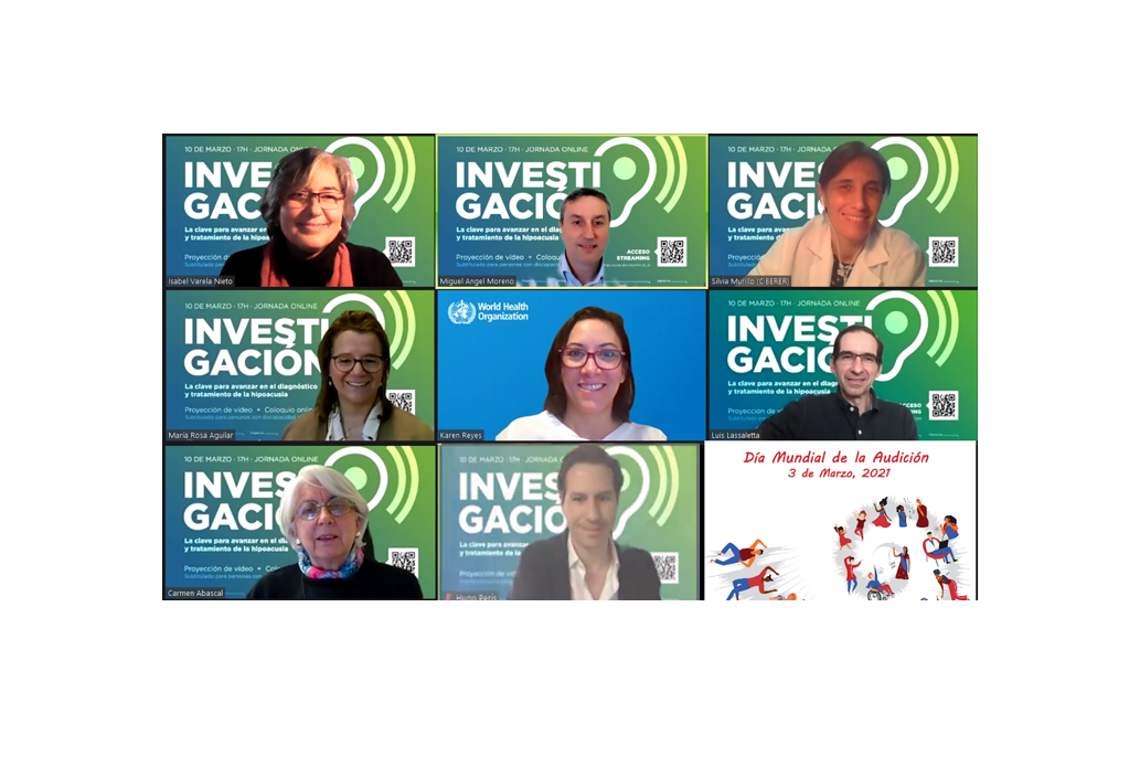 La Jornada online sobre investigación como clave para avanzar en el diagnóstico y tratamiento de la hipoacusia, realizada con motivo del día Mundial de la Audición, se celebró con gran éxito el pasado 10 de marzo. La grabación de este encuentro, que fue retransmitido en directo y accesible a personas con déficit auditivo, ya está disponible en este enlace.