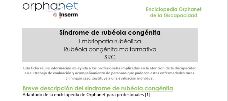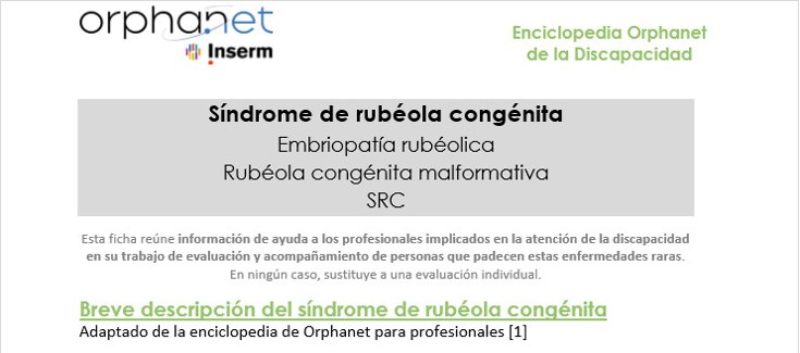 Recientemente, el equipo de Orphanet España ha incorporado fichas en español sobre 3 enfermedades raras: síndrome de rubéola congénita, enfermedad de Machado-Joseph y síndrome de Cockayne.
