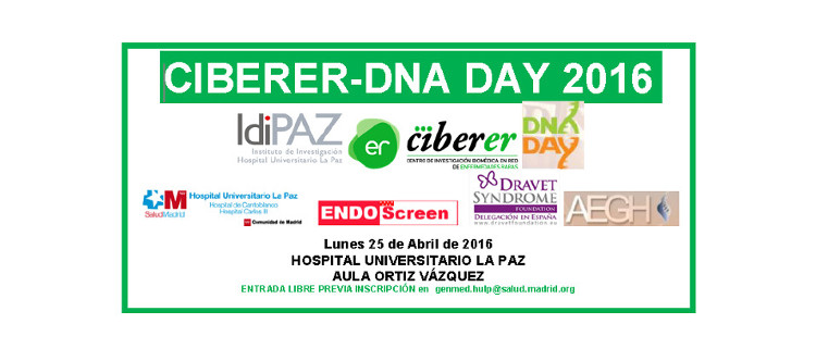 El Hospital Universitario La Paz de Madrid acogerá el CIBERER-DNA Day 2016 el próximo lunes 25 de abril por la mañana. Este evento, en el que participan investigadores de diversas unidades del CIBERER, se centrará en esta edición en las epilepsias genéticas y la discapacidad intelectual.