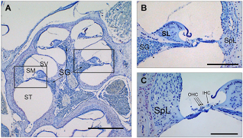 La U761 CIBERER, dirigida por la doctora Isabel Varela-Nieto, y la unidad F1 de la plataforma SEFALer han publicado los resultados de un ensayo preclínico en el que se evalúa la seguridad y la eficacia de dos péptidos inhibidores del factor de crecimiento transformante (TGF) β1 en el tratamiento de la hipoacusia inducida por ruido (ORPHA90059). Por primera vez se confirma que la expresión de esta citoquina aumenta en la cóclea de ratones tras la exposición a ruido y que la inhibición de su actividad contribuye a la prevención y reparación de los daños producidos en el receptor auditivo, por lo que constituye una nueva estrategia terapéutica para esta patología.