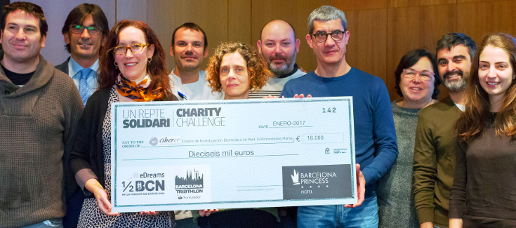 El Hotel Barcelona Princess acogió el pasado viernes 20 de enero el acto de entrega del cheque simbólico de 16.000 euros al CIBERER para la investigación en la adrenoleucodistrofia asociada al cromosoma X (X-ALD) que realiza la U759 liderada por la Dra. Aurora Pujol en el IDIBELL.