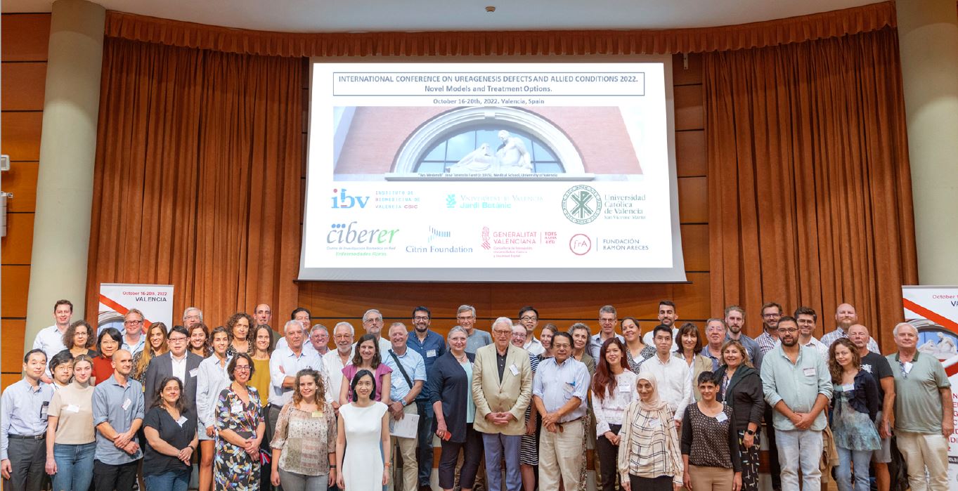 Más de 75 inscritos de 16 países han participado en la Conferencia internacional sobre defectos del ciclo de la urea y condiciones relacionadas organizada por investigadores de la U739 CIBERER en el Instituto de Biomedicina de Valencia (IBV-CSIC) liderados por Vicente Rubio. El encuentro, en el que ha tenido un gran protagonismo el CIBERER, se ha celebrado en Valencia del 16 al 20 de octubre.