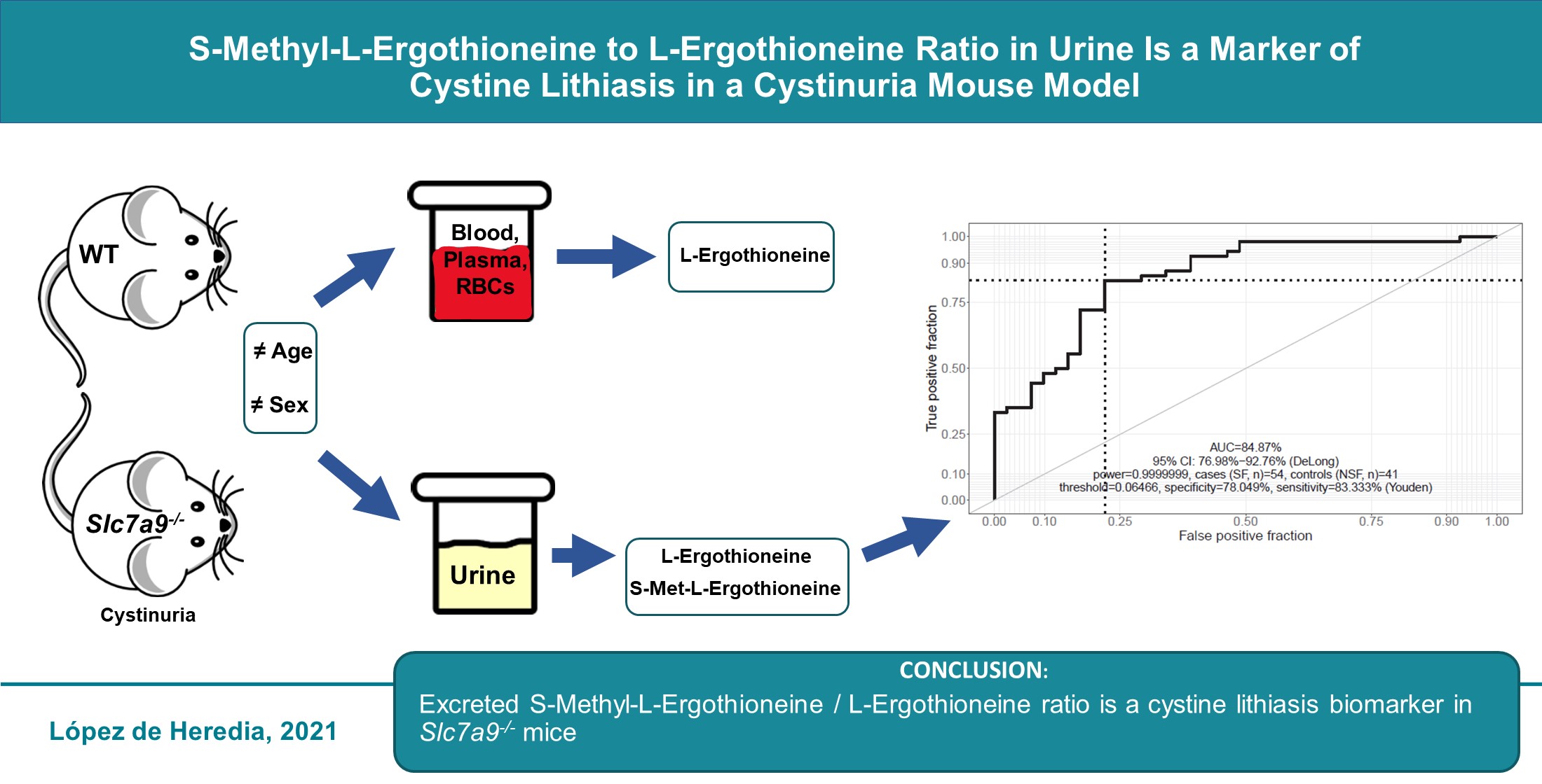 López de Heredia, Miguel, Lourdes Muñoz, Ciriaco Carru, Salvatore Sotgia, Angelo Zinellu, Carmen Serra, Amadeu Llebaria, Yukio Kato, and Virginia Nunes. 2021. "S-Methyl-L-Ergothioneine to L-Ergothioneine Ratio in Urine Is a Marker of Cystine Lithiasis in a Cystinuria Mouse Model". Antioxidants 10, no. 9: 1424. https://doi.org/10.3390/antiox10091424