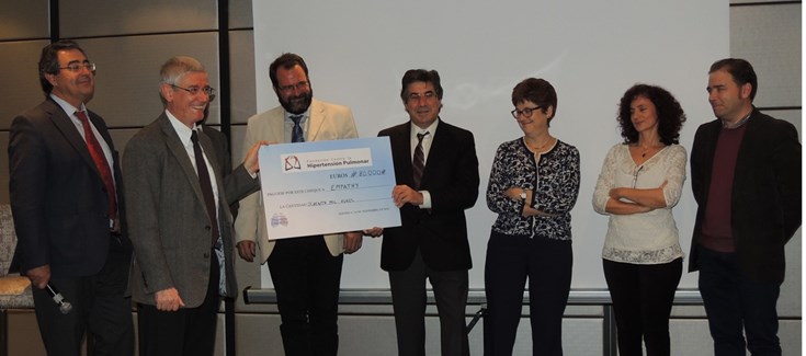 La Fundación Contra la Hipertensión Pulmonar (FCHP) conmemoró ayer su séptimo aniversario con la entrega de un cheque por valor de 80.000 euros al Instituto de Salud Carlos III y al Centro de Investigación Biomédica en Red de Enfermedades Respiratorias (CIBERES) para la investigación sobre esta enfermedad rara, incapacitante y mortal.