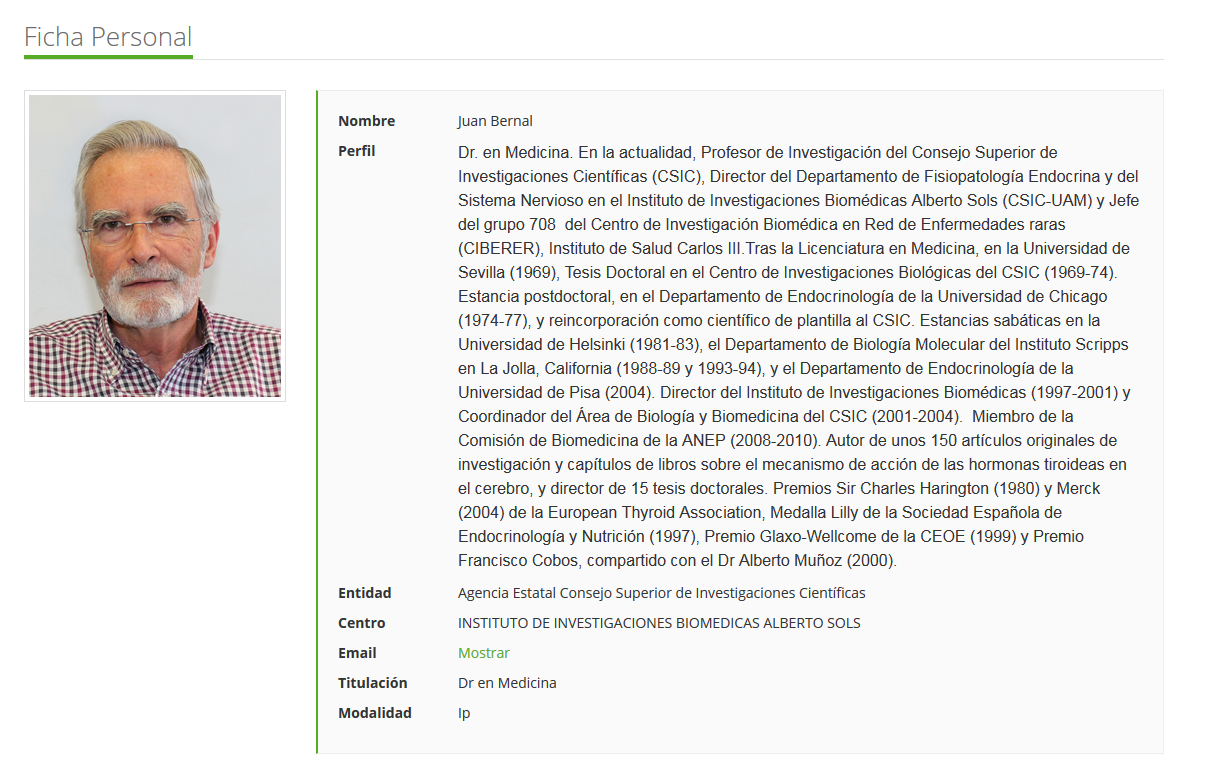 Todos los investigadores del CIBERER tenéis una ficha personal dentro del apartado de vuestro grupo en nuestra página web. Esta ficha recoge los datos que vosotros mismos habéis incorporado. Desde la Intranet del CIBERER, en el apartado "Mis datos" que encontraréis en el menú lateral izquierdo, podéis introducir un breve perfil profesional, vuestra fotografía (que debe ser mayor de 200KB y con formato JPG), el mail y la titulación, entre otras informaciones.