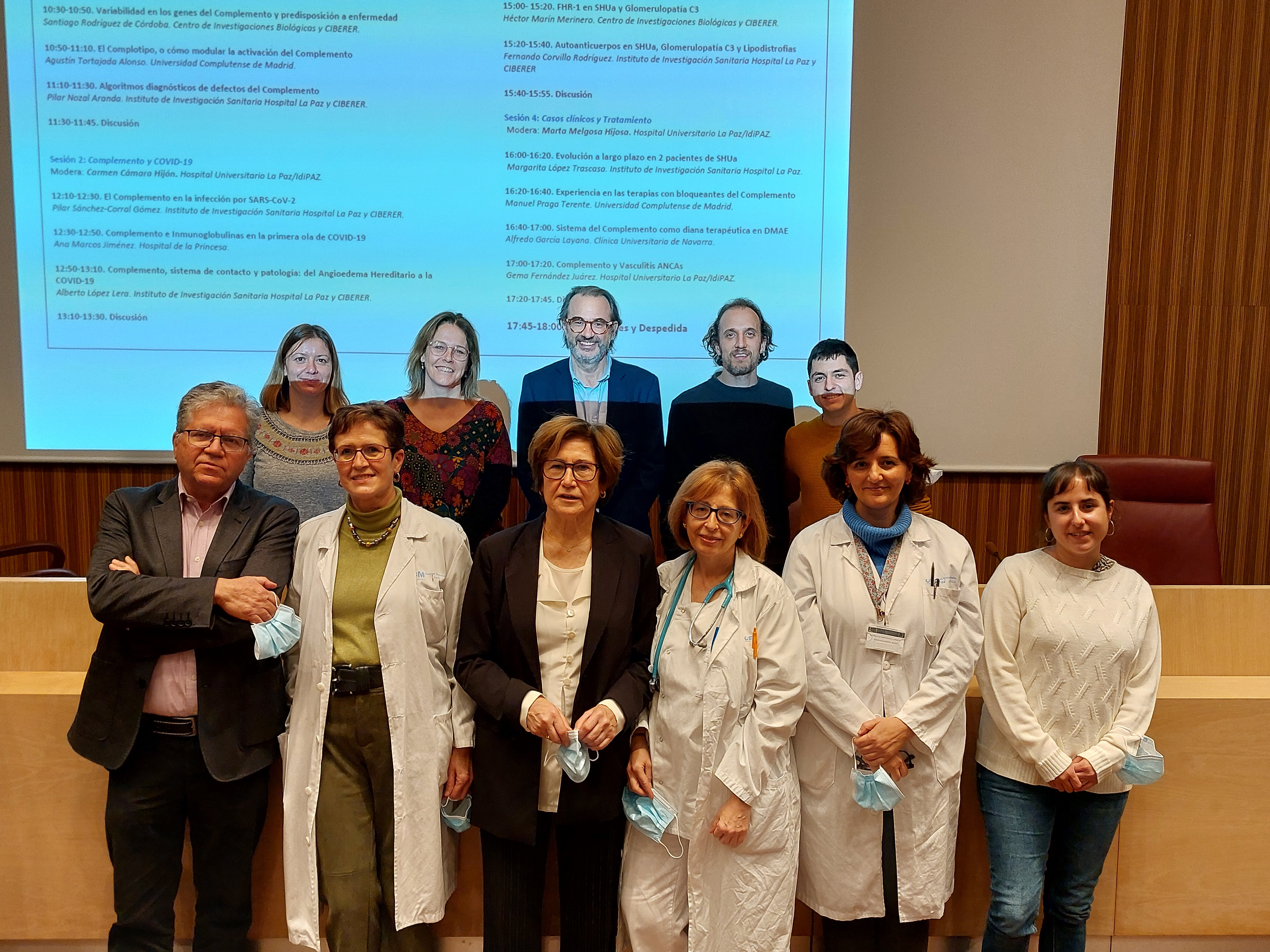 Unos 80 profesionales, en su mayoría del ámbito de la inmunología, la nefrología o la investigación, asistieron al Curso de Actualización sobre el sistema del complemento en patología organizado por Pilar Sánchez-Corral, de la U754 CIBERER que dirige Teresa Caballero, y por Margarita López Trascasa, anterior directora de este grupo, el pasado 21 de noviembre. En el curso, se revisaron las variantes genéticas de predisposición a patologías, los protocolos utilizados para el diagnóstico y se analizar los resultados de los tratamientos con inhibidores del complemento en enfermedades raras.